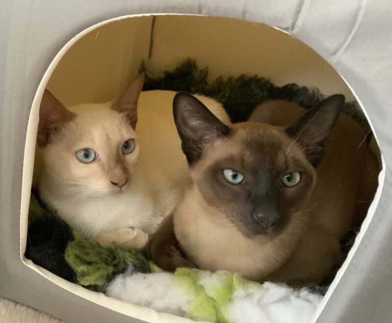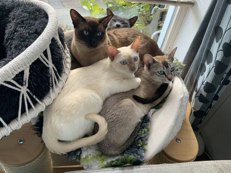 Siamezen zijn bijna wit, behalve de “points” of extremiteiten: neus, oren, poten en staart. Tonkanezen zijn iets donkerder gekleurd, behalve als zij natuurlijk de solid of point tekening hebben. Burmezen zijn het donkerst van de drie.